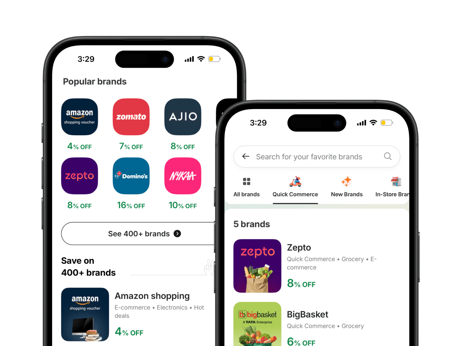 Discounts & cashbacks from 350+ brand across 20+ categories.