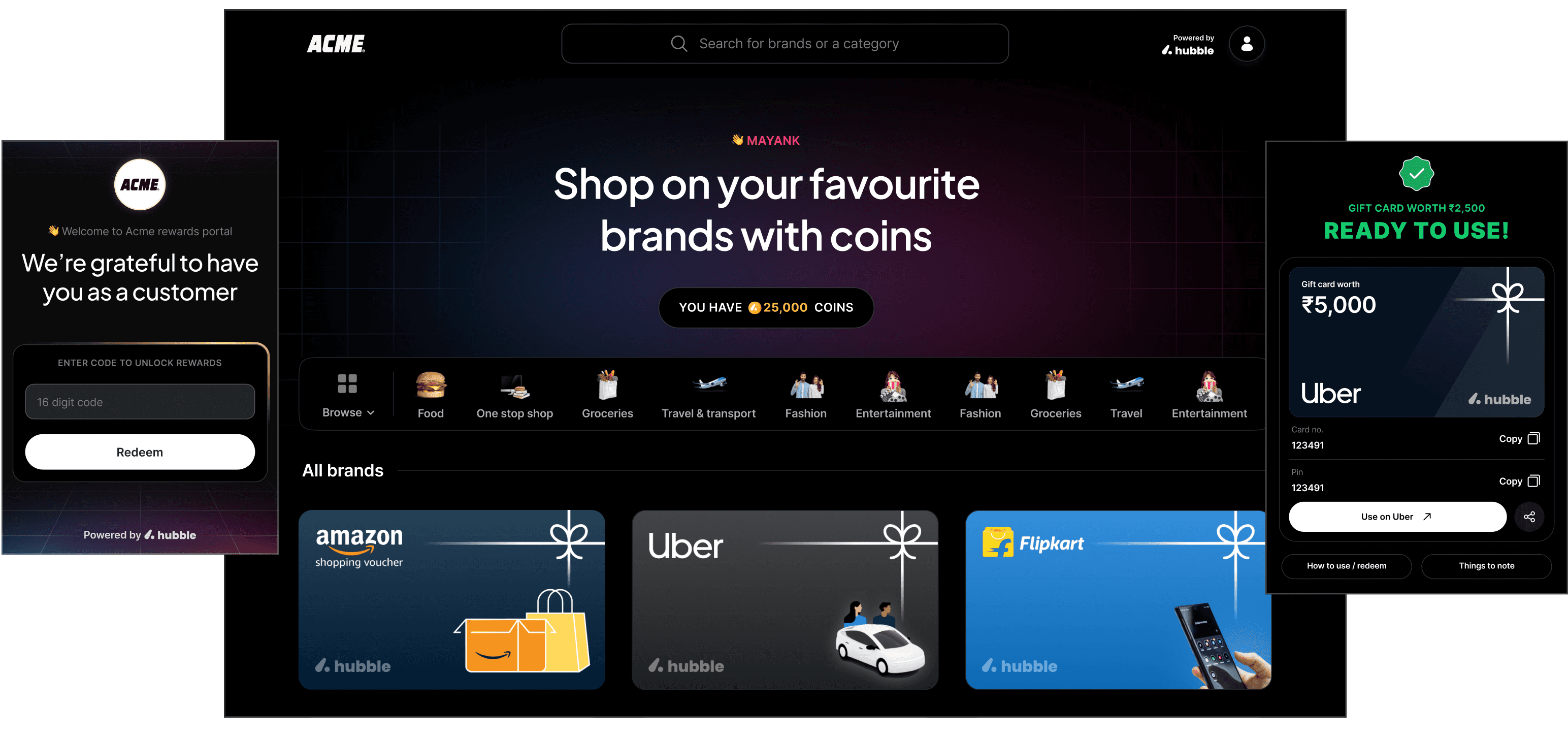 Powered by Hubble rewards catalogue in partnership with 500+ brands